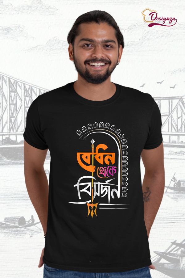 Add a spiritual touch to your wardrobe with our Bengali Typography Pooja Collection T-shirt. Crafted from 100% pure bio-wash cotton, this unisex T-shirt is soft, breathable, and perfect for all-day comfort. The unique Bengali typography design reflects the beauty of pooja traditions and is digitally printed for a vibrant, long-lasting look. Pair it with jeans, dhotis, or casual pants to make a cultural yet stylish statement during festivals or daily prayers