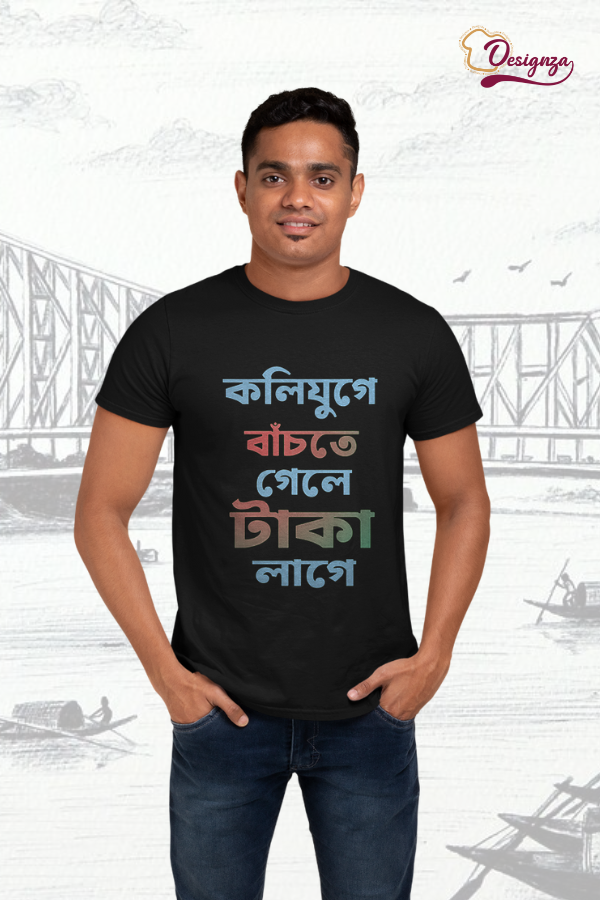 Unisex Bio-Wash Pure Cotton Bengali Typography Printed T-Shirt